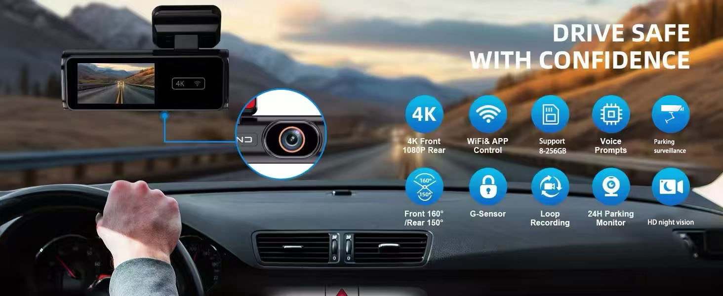 Specifications: 4K single lens, 4K 1080p square rear-pull-out lens, 4K 1080p in-car round lens