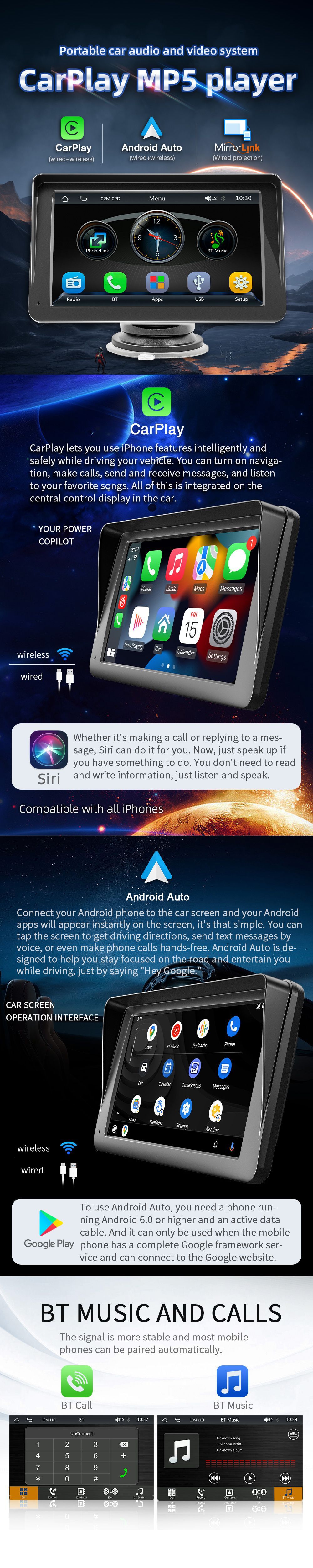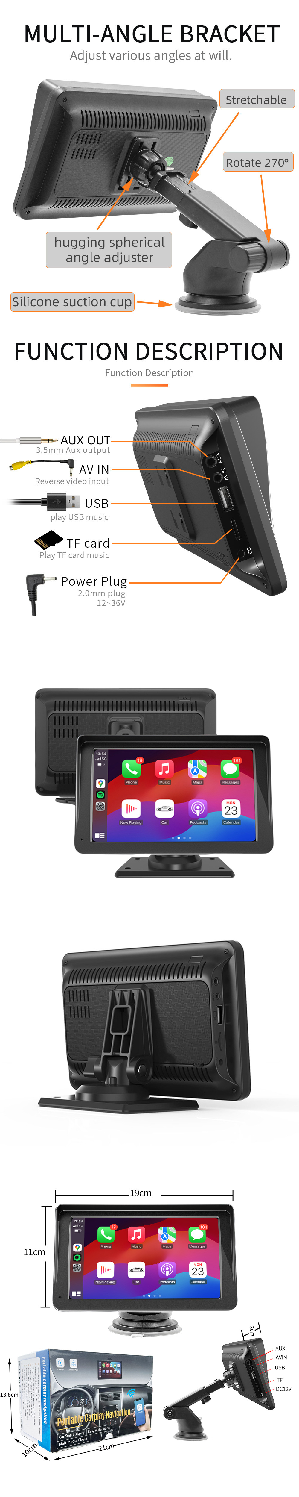 Package Specifications: 7-inch In-Car Smart Screen with CarPlay (Cross-Border English Version)